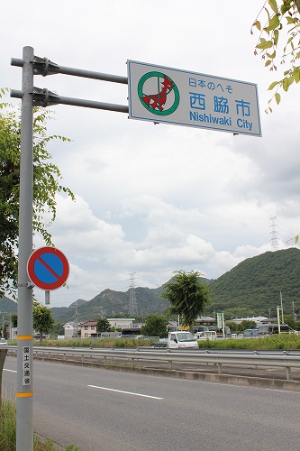 ↑「日本のへそ 西脇市」 へそのシンボルマークとともに表示