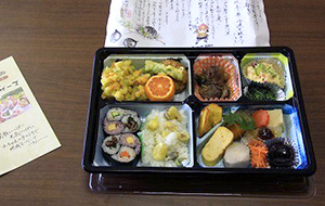 | 価格 | ◆官兵衛の里の恵み弁当 1,260円(予約販売のみ) 電話予約:0795-28-4176 ◆官兵衛さんの家紋巻きセット 400円 |